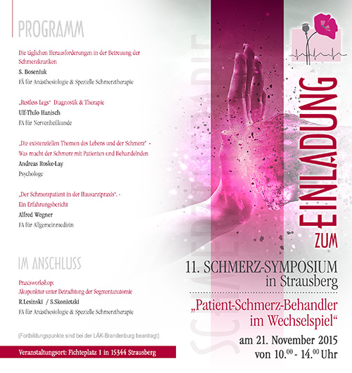 Am 21. November fand in unserer Praxis (Fichteplatz 1, Strausberg) das 11. Schmerz-Symposium unter dem Titel Patient-Schmerz-Behandler im Wechselspiel statt.